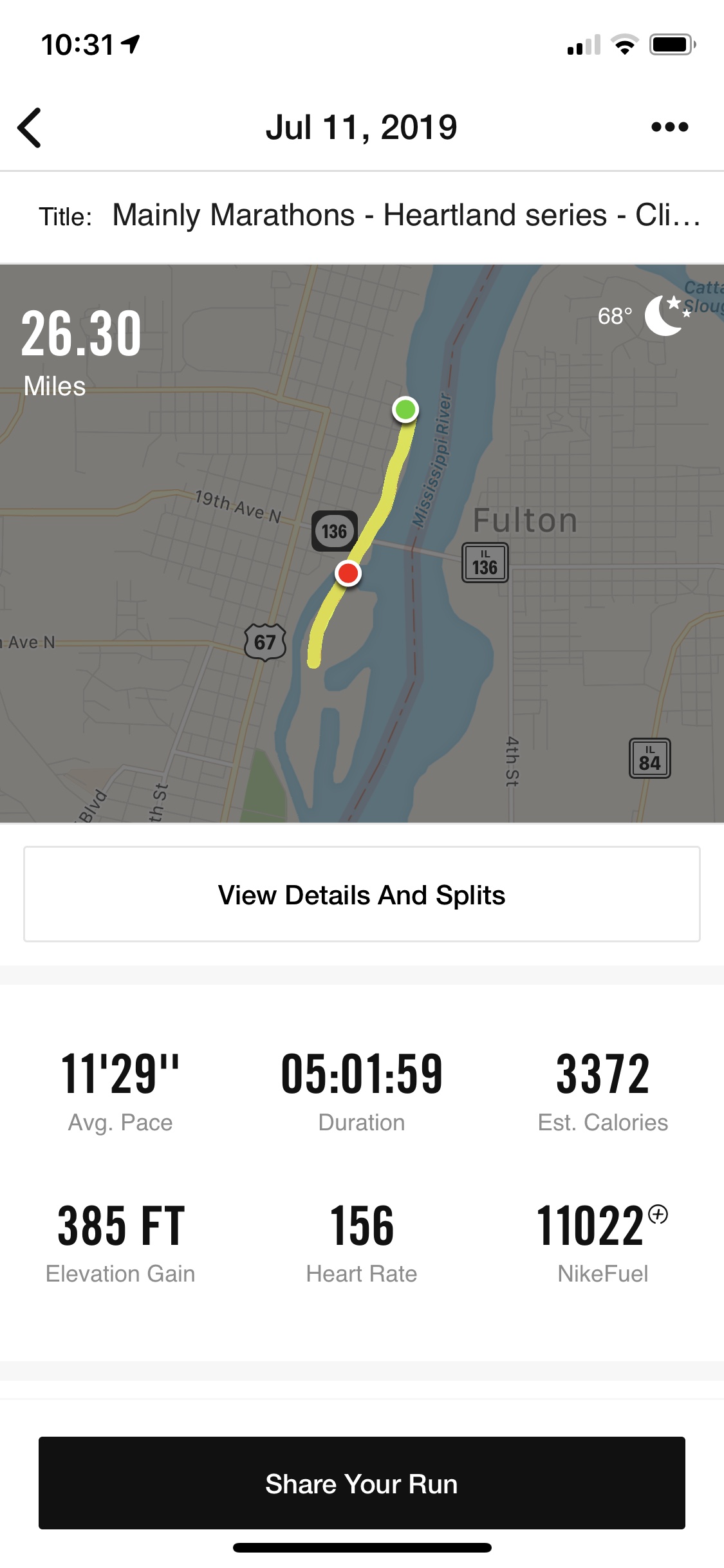 On July 10, I flew into Minneapolis to start a 3 day series with the Mainly Marathons group in Iowa, Wisconsin and Minnesota. After I arrived into Minneapolis around 6pm, I drove for 5 hours to Clinton, Iowa for the following day’s marathon.